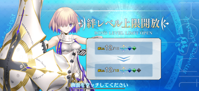 せっせと絆を上げています。ここからマシュはもうすぐ絆13に辿り着きそうで不安になってきた。マシュの絆マックスになったら誰が礼装を抱えてくれるというの?(まぁ戴冠戦以外ならコスト軽い他の子が持ってくれるということはできるんですが~)