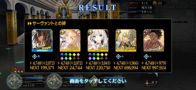 何このパーティって感じなんですけど~~望ちゃん宝具1を起点にして、フレンドの望ちゃんかメイヴちゃんか水着クリームヒルトさんを借りて宝具2連打です。エウロペさまは魅了特攻付与兼デバフ、魅了を外したらマリーちゃん、外さなかったらノアくんでバフって感じでした。強いフレンドを借りれば無問題です。