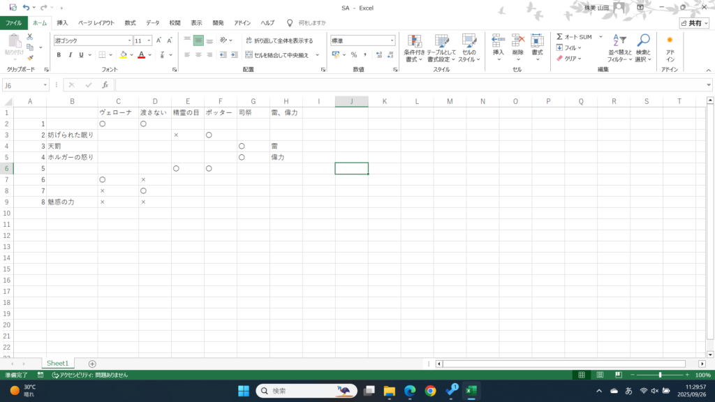 最後に多分精霊の目のおばあちゃんがいないとポッターさんルート詰みそうだなと踏んで精霊の目のおばあちゃんを普通の共感覚お絵描きおばあちゃんにしてED2でコンプです。忘れないようにエクセルにしておいた。↓